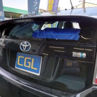 プリウスのリアガラス交換です、プリウスは2枚ガラスが付いてますが今回は下のアンダーガラスです。内張やスポイラーを外して残ったガラス…