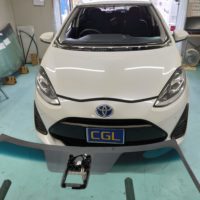 TOYOTAアクアのフロントガラス交換です、今回はブレーキアシスト付きですが実費交換との事で社外品にて施工しました。ガラスの料金は…
